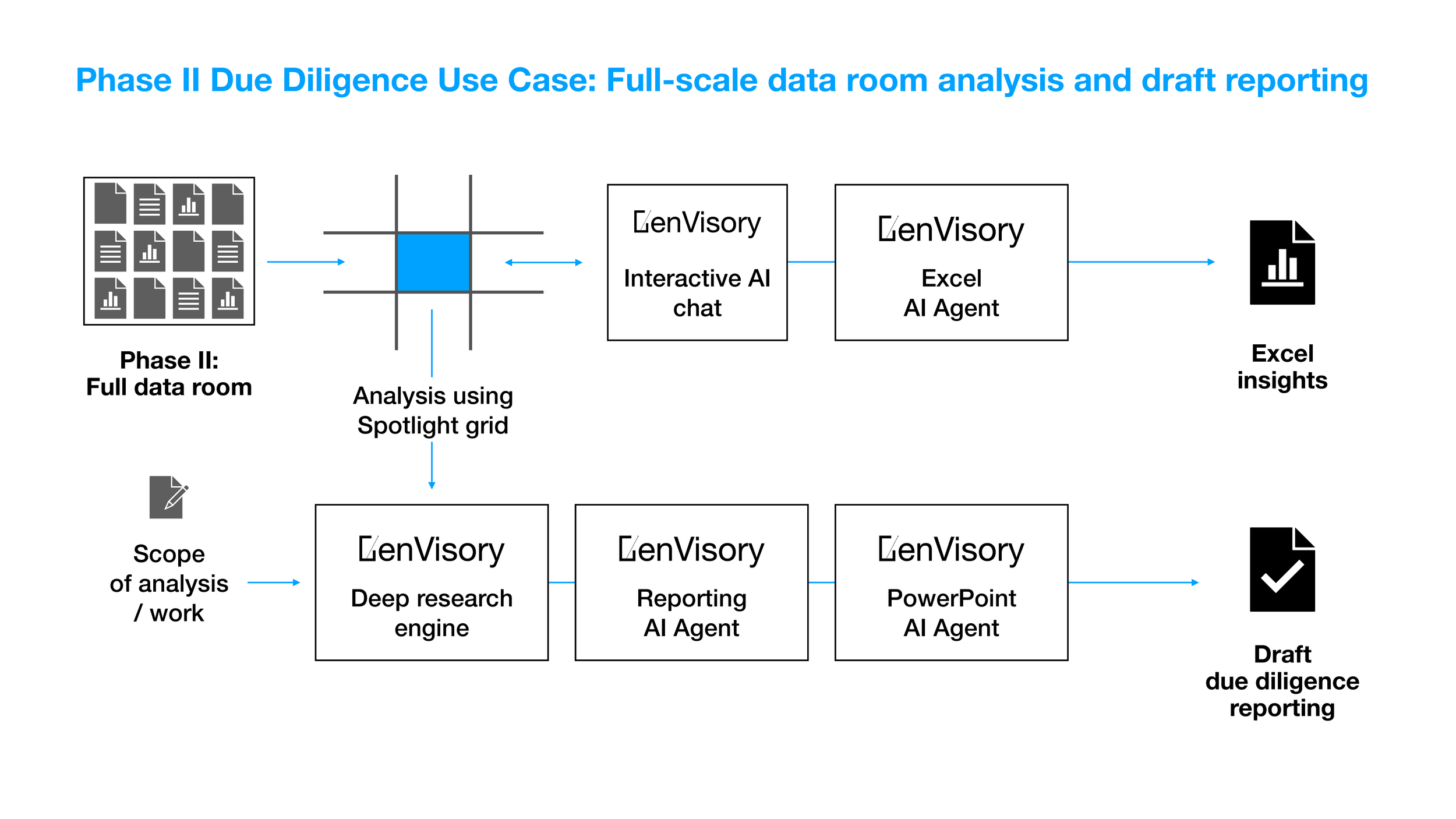 Prompt GenVisory to generate analysis reports as foundation for the full-scale due diligence report